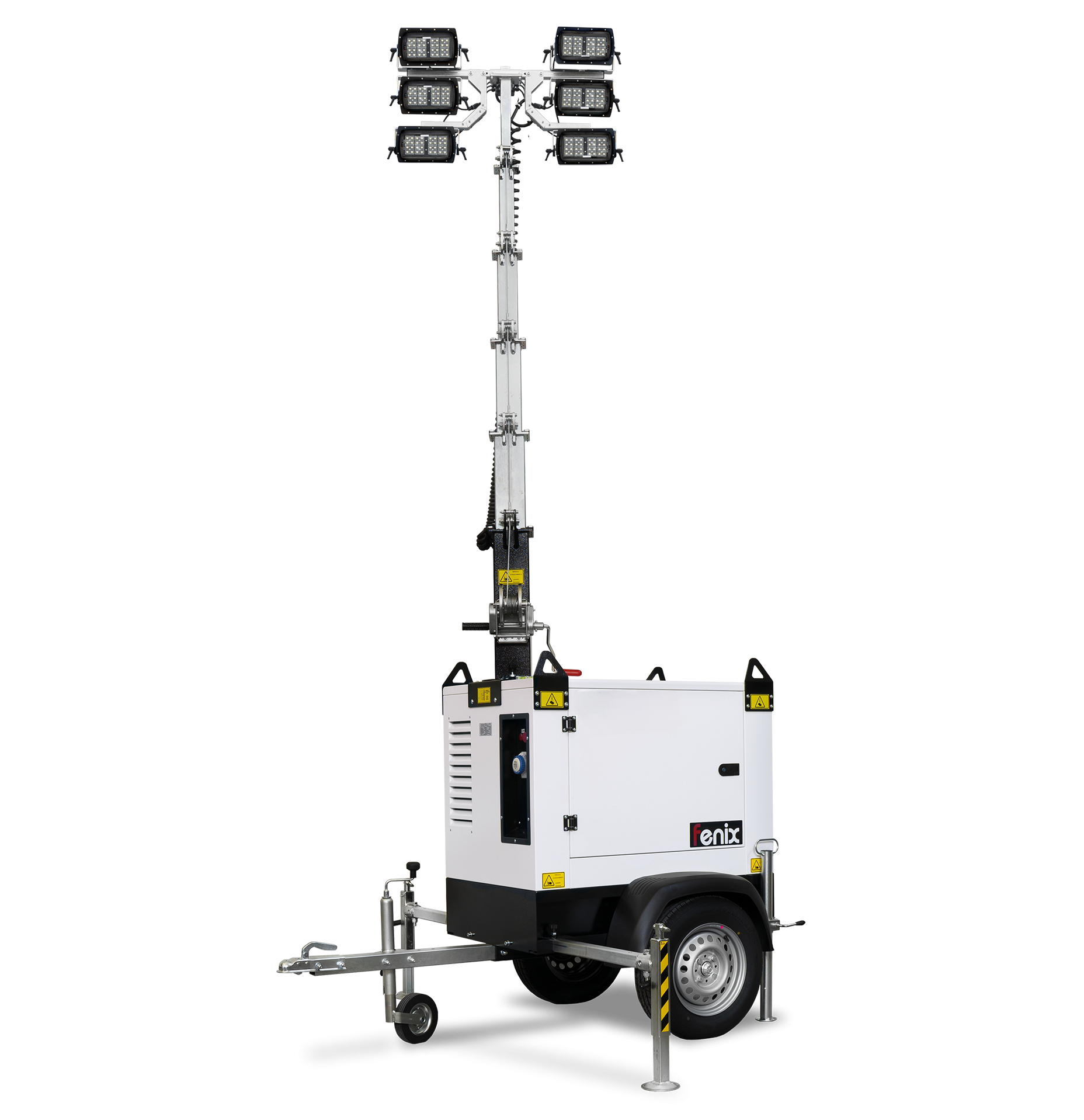 A torony vontatható utánfutóra van szerelve, könnyen szállítható.